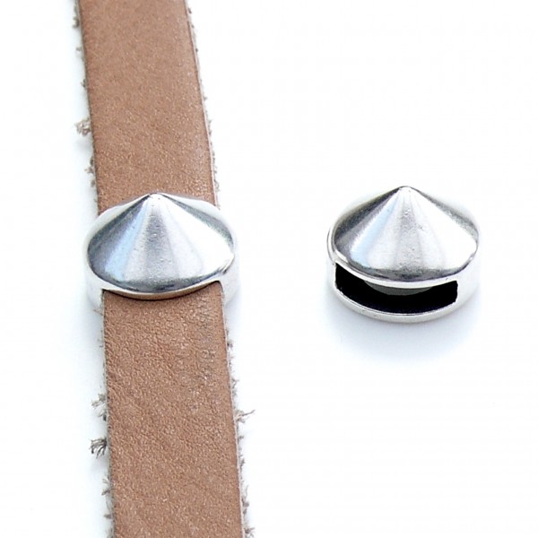 Schuifkraal spike voor 10mm breed leer, DQ Antiek Zilver