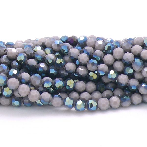 DQ glaskraal rond facet 6mm, Milky White Diamond