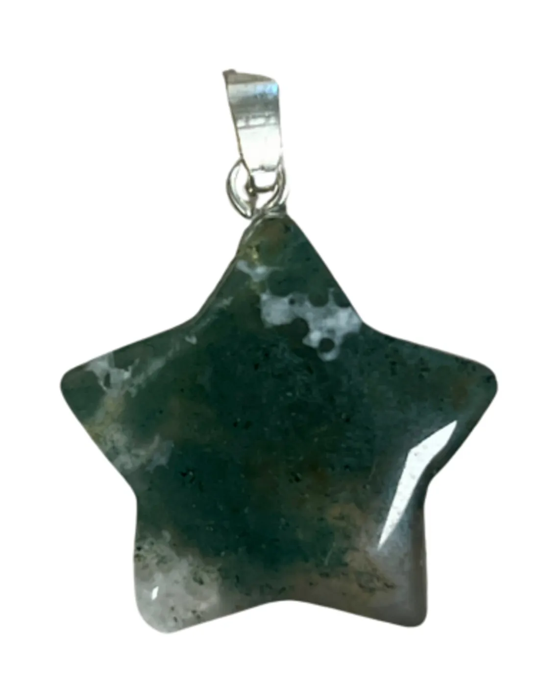Natuursteen, Mos Agaat Hanger Ster, 20mm